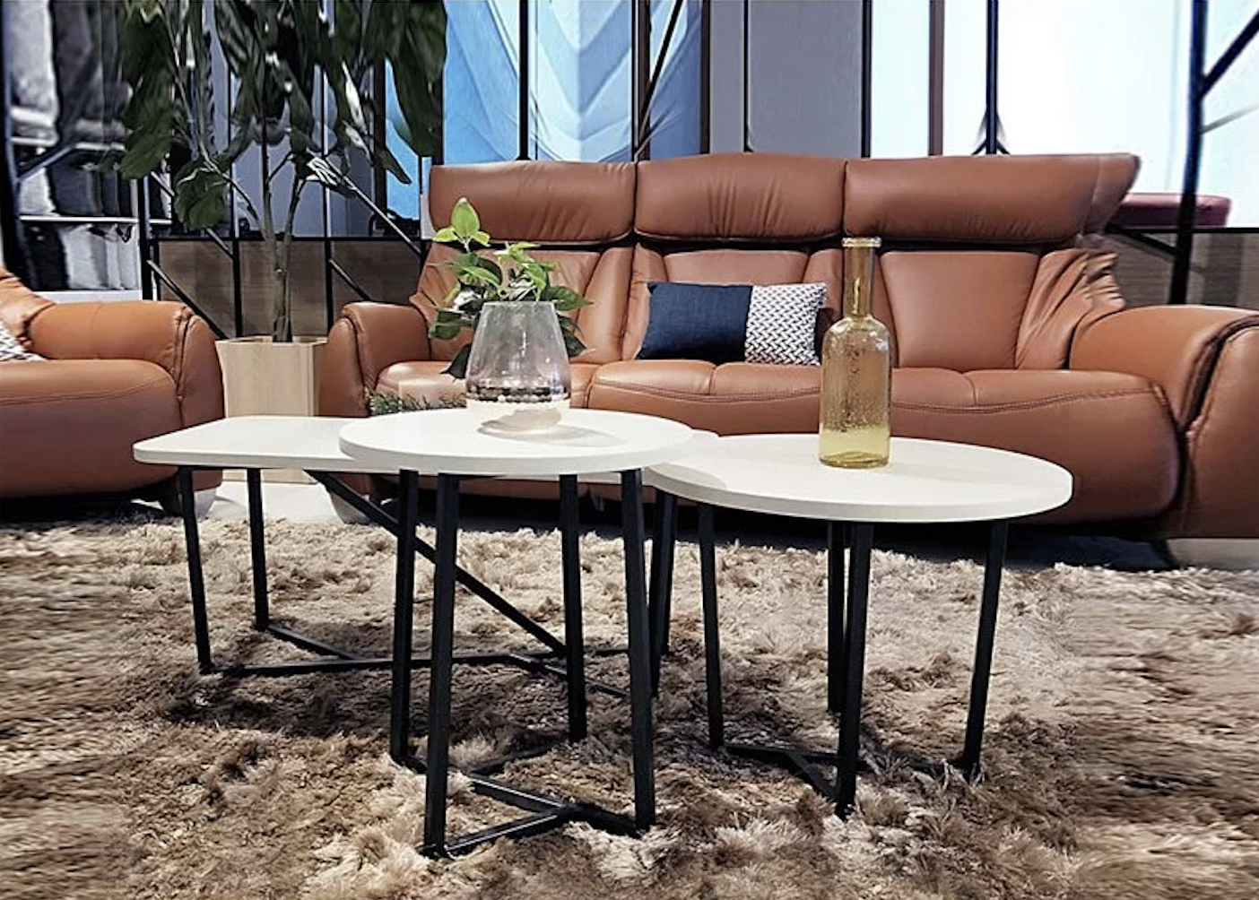 金屬框架的沙發與茶几:黑色金屬框架搭配皮革或棉麻材質的沙發,既耐用又能凸顯工業風的硬朗感。同時,選擇木質或金屬結合的茶几,為空間帶來自然與工業的和諧平衡。